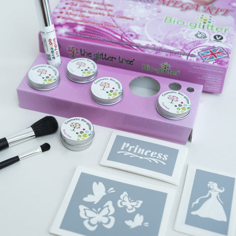 Introducing our sleek and newly designed Perfect Princess Biodegradable Glitter Tattoo Deluxe Kit